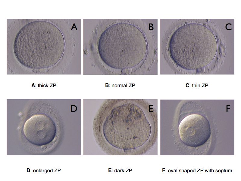 The zona pellucida (ZP) may vary in thickness and rigidity. Some patients have clearly thinner ZP than others. It is usually a characteristic associated with the patient more than with the oocyte. Although thickness may vary slightly around the oocyte, the following categories can be defined.